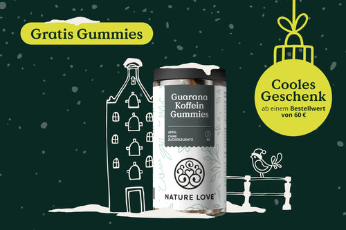 *gültig am 03.12.2024 bis 23:59 Uhr auf jede Bestellung ab 60€ Warenkorbwert im Nature Love-Shop. Das Produkt "Koffein Guarana Gummies" muss selbst zum Warenkorb hinzugefügt. Nicht kombinierbar mit anderen Aktionen oder Rabatten. Keine Barauszahlung. Nur solange der Vorrat reicht. Nur 1x pro Bestellung einlösbar.