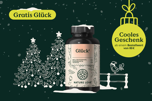 *gültig am 05.12.2024 bis 23:59 Uhr auf jede Bestellung ab 80€ Warenkorbwert im Nature Love-Shop. Das Produkt " Glück Kapseln" muss selbst zum Warenkorb hinzugefügt. Nicht kombinierbar mit anderen Aktionen oder Rabatten. Keine Barauszahlung. Nur solange der Vorrat reicht. Nur 1x pro Bestellung einlösbar.