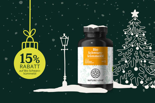 *gültig am 24.12.2024 auf alle Produkte im Nature-Love Shop, ausgenommen Vorteils-Sets und bereits reduzierte Ware. Nicht kombinierbar mit anderen Aktionen oder Rabatten. Keine Barauszahlung. Nur solange der Vorrat reicht.